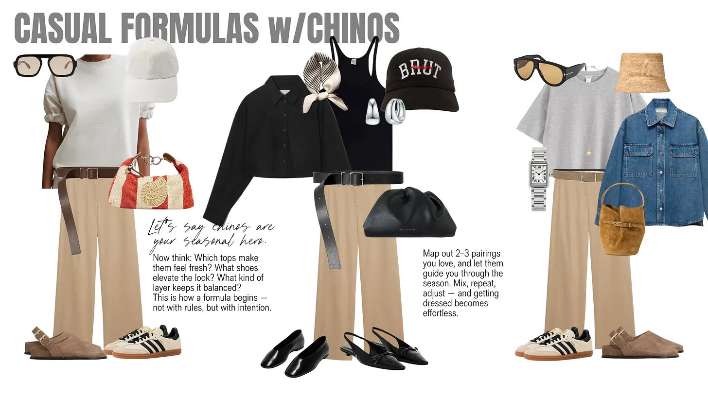 A formula is the repeatable structure behind an outfit, the reason you can get dressed in five minutes and still look like you thought about it. You’ve already done the thinking.