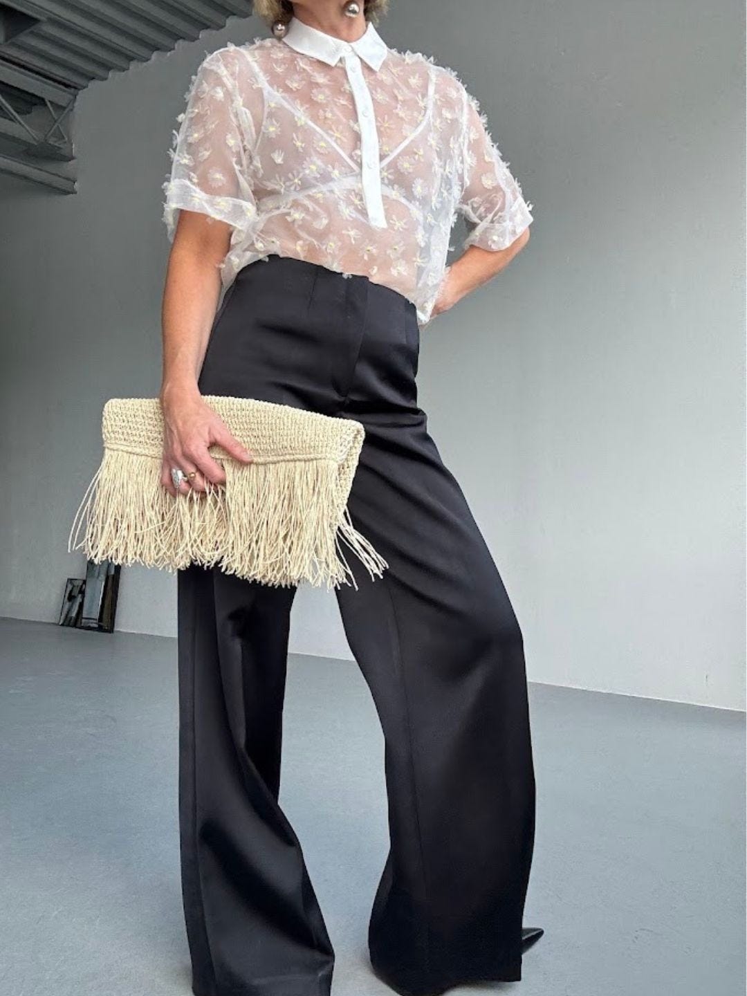 Skip the matching set - color-matched bag and shoe, perfectly coordinated accessories. Keep the base simple, then add one “wrong” choice on purpose.