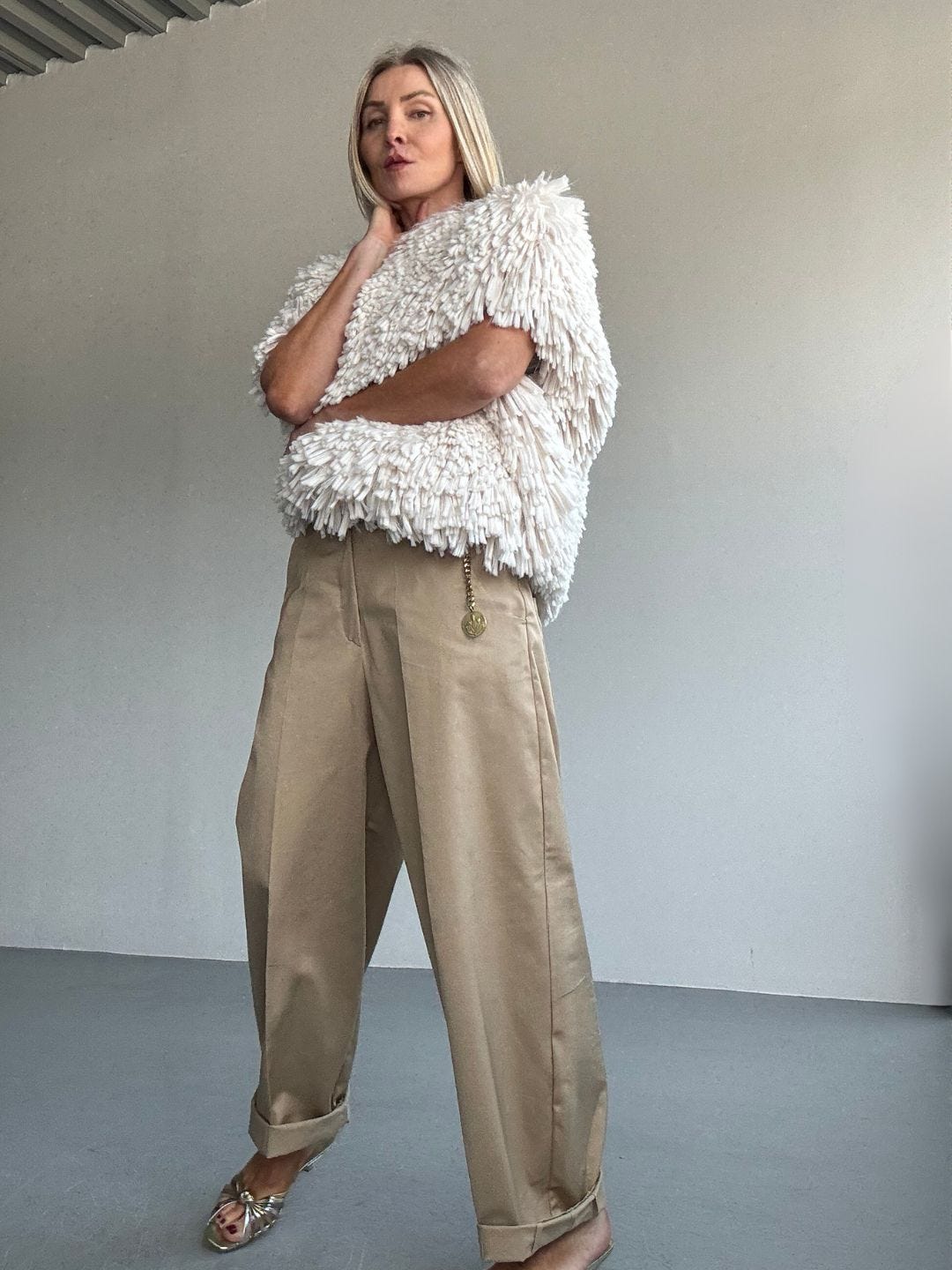 That’s the difference between wearing clothes and styling them. You’re not trying to look perfectly put together. You’re choosing the counterpoint.
