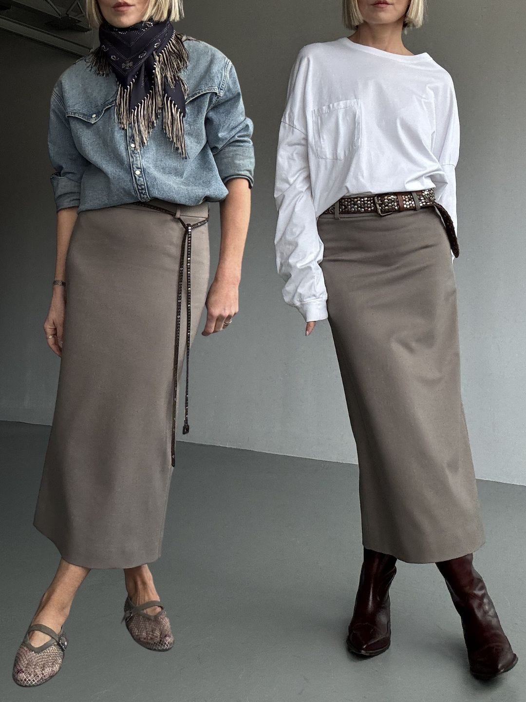 And then the update. This season I added a version with belt loops, which makes it even more workable. It lets you define the waist, shift proportion, and change the mood without changing the skirt.