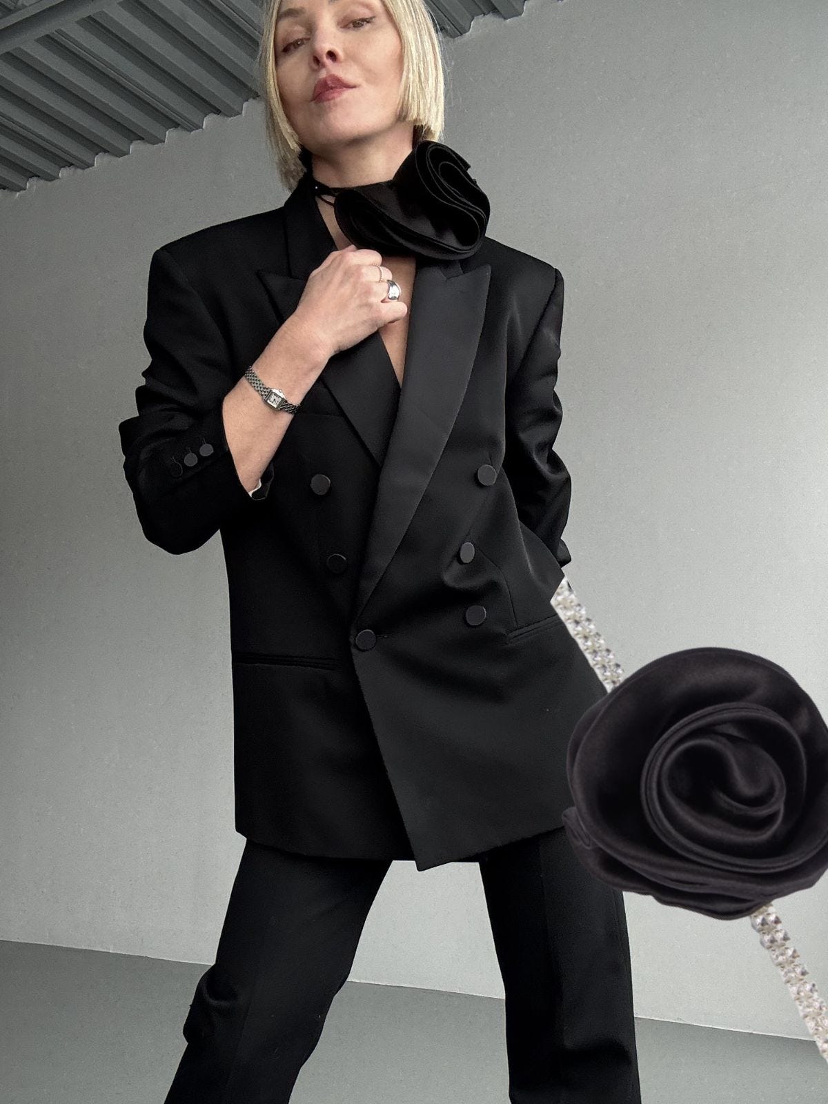 It isn’t “better” than a regular blazer. It’s just a different tool. A regular blazer can disappear into your day. A tuxedo blazer adds edge. It sits somewhere between daywear and evening without committing to either.